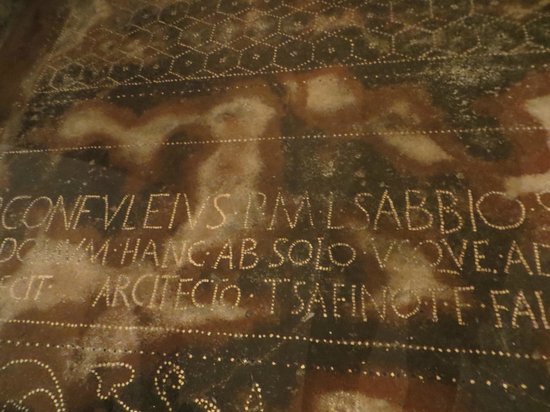 Varcata la porta ne troverete davanti ai vostri occhi un’altra iscrizione pavimentale che ci rileva tante informazioni. L’iscrizione pavimentale recita così: