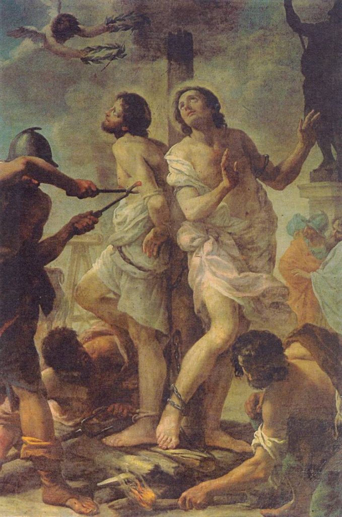 Dopo San Valentino, viene immediatamente San Faustino patrono dei single. Questa festa è una festa in cui i single sperano di incontrare l’anima gemella oppure di fare amicizia, insomma è un augurio nel trovare le persone giuste. San Faustino, apparteneva ad una famiglia pagana di rango nobile, rango che gli permise l’entrata nell’esercito romano nel ruolo di cavaliere insieme alla sorella Giovita. Attratti dal Cristianesimo, andarono dal vescovo Sant’Apollonio, si fecero convertire e battezzare, e dopo un po’ di tempo, ebbero come compito “l’evangelizzazione delle terre bresciane” che portarono a compimento visto il numero di conversioni. Questa opera di diffusione che si estendeva a macchia d’olio, fu presa in mal modo dalla gente pagana che chiese l’aiuto all’imperatore Traiano, che essendo pagano e vedendo il Cristianesimo come una minaccia alla stabilità del potere assoluto conferitogli dagli dei, non esitò a dare il via alla terza persecuzione contro i cristiani. La scusa che Traiano espresse come giustificazione per la persecuzione contro i cristiani fu ” Mantenimento dell’ordine pubblico”. Tra l’altro Traiano rispose alla lettera di Plinio il Giovane che gli domandò il perchè delle persecuzioni contro i cristiani. Traiano dette ordine al governatore Italico di perseguitarli, il quale dovette sospendere le ricerche per via della morte di Traiano. Eletto imperatore Adriano, il governatore riebbe l’ordine dall’imperatore di perseguitarli. Italico svolse il compito con tale foga che una volta presi, li minacciò di decapitarli se non avessero abiurato e rivolto agli dei un sacrificio, però la minaccia ricevette il rifiuto, che si trasformò nella carcerazione. Adriano di ritorno dalla campagna militare nelle Gallie, si fermò a Brescia, e venne chiamato dal governatore Italico a provvedere di persona a trovare una soluzione riguardanti i due cristiani. Adriano interloquì con i due cristiani con toni molto accesi, chiedendo loro di rivolgere il sacrificio agli dei ma San Faustino e San Giovita non solo dettero un fermo rifiuto, ma danneggiarono le statue delle divinità. Per punirli, Adriano li fece condurre nell’Anfiteatro per darli in pasto alle belve, che miracolosamente si ammansirono a loro piedi, suscitando stupore che si trasformò in conversione per molta gente, tra cui la moglie del governatore Italico, Afra, che slanciandosi dall’Arena, corse verso i due santi, chiedendogli di istruirla nella religione cristiana. Le conversione furono circa 3.000, ma un altro personaggio che esercitava il ruolo di ” Ministro del Palazzo Imperiale” di nome Calocero, si convertì al Cristianesimo, non nascose mai la sua fede, divulgandola tra i suoi soldati che rimasero sedotti dalle sue parole convertendosi al Cristianesimo. Adriano non sentendosi più al sicuro, fece perseguitare anche Calocero e i suoi soldati, riuscendo solo a condannare i soldati di Calocero. Adriano non si arrese, decise dopo tentativi di promessa, di farli bruciare sul rogo, ma anche qua succede un evento inaspettato: le fiamme bruciarono solo la legna, non toccando i due Santi. Questo evento portò alla disperazione Adriano, che non vedendo via d’uscita, li fece di nuovo condurre in carcere, precisamente a Milano, dove trovarono Calocero che fu quello che soffrì rispetto ai due Santi che nonostante i tormenti crudeli subiti, non produssero un lamento, esempio che portò molta gente di Milano a convertirsi al Cristianesimo, inducendo l’imperatore a ritentare l’impresa di farli diventare pagani. Li trasferì a Roma, al Colosseo, per darli in pasto alle belve, ma per la seconda volta, le belve si ammansirono, suscitando stupore tra il popolo romano. I due santi non si sa come ebbero modo di visitare le catacombe, frequentare le comunità cristiane, di conoscere il Sommo Pontefice e partecipare alle funzioni religiose, ma a prescindere dal sapere come hanno fatto, non passò molto tempo che Adriano subito li fece ricercare e incarcerare, portandoli a Napoli. Durante il tragitto effettuato con una nave, ci fu una tempesta, che solo con il loro intervento riuscirono a calmare le forze della Natura, suscitando ammirazione da parte dei marinai che erano rimasti terrorizzati, sentimento che si trasformò in conversione. A Napoli subirono altri supplizi molto cruenti, ma non mollarono. Infine li fece mettere su una barca, facendoli abbandonare, ma gli angeli li salvarono dalla morte. Adriano infastidito e sconcertato, li fece arrestare e decapitare a Brescia il 15 febbraio tra il 120 e 130 d.C., poco fuori di Porta Matolfa. Il motivo per cui il santo è patrono dei single, è da ricercare in una tradizione del medioevo il quale racconta che San Faustino dava l’opportunità alle fanciulle di incontrare il loro futuro compagno.