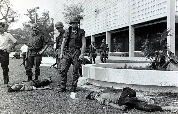 A Saigon l’offensiva del Tet ebbe inizio alle 2:00 del mattino del 31 Gennaio 1968. Sei erano gli obiettivi principali presi d’assalto da una forza di 4.000 uomini: il palazzo presidenziale, il quartier generale degli stati maggiori riuniti del Sud Vitenam (JGS), l’ambasciata americana, la base aerea di Tan Son Nhut, il quartier generale della marina e la sede della radio nazionale. Quest’ultimo bersaglio era considerato di particolare importanza in quanto si intendeva prenderne il controllo così da poter trasmettere all’intero Vietnam del Sud un messaggio di Ho Chi Minh nel quale si invitava la popolazione a sollevarsi contro il governo e i suoi alleati americani. L’assalto ebbe successo e, grazie all’effetto sorpresa, i Vietcong riuscirono rapidamente a prendere il controllo della struttura, ma non poterono trasmettere il messaggio perché un tecnico, sentendo gli spari, inviò un segnale in codice permettendo il repentino stacco della corrente elettrica della stazione. Fallito il loro principale obiettivo la forza d’attacco si trincerò nell’edificio, infatti l’ordine era che, una volta preso un obiettivo, questo andasse tenuto fino all’arrivo dei rinforzi; in realtà però questi rinforzi, che implicavano lo scoppio della sperata insurrezione generale, non giunsero mai, ma i Vietcong tennero comunque la posizione per sei ore finché, sopraffatti, decisero di falsi saltare in aria con la dinamite rimasta insieme all’edificio piuttosto che rischiare di farsi catturare. Fallimentare fu invece l’assalto al palazzo presidenziale, difeso da un’ingente guarnigione composta anche da due carri armati; rapidamente respinti gli attaccanti si rifugiarono in un vicino edificio che venne difeso per due giorni. Ancor peggio andò alla forza che attaccò il quartier generale della marina, questo obiettivo era stato scelto per portare avanti un ambizioso piano: impadronirsi delle navi ormeggiate e usarle per portare la popolazione delle zone rurali in città a prendere parte all’insurrezione; nulla di tutto ciò avvenne in quanto, in un combattimento di appena cinque minuti, la squadra d’assalto dei Vietcong venne completamente annientata. L’attacco al JGS fu uno dei primi ad essere lanciato, ma il sopraggiungere di una jeep americana nelle prima fasi dell’assalto permise alle forze sud vietnamite di mettersi in allarme e reagire prontamente. Teoricamente il perimetro del JGS avrebbe dovuto essere colpito da tergo da un’unità locale chiamata Go Mon, ma questa non riuscì ad arrivare in zona prima delle 7:00. Nonostante questo contrattempo il Go Mon riuscì a forzare le difese e a penetrare all’interno del perimetro, ma fatto ciò, seguendo rigorosamente gli ordini ricevuti, si trincerò in attesa anche stavolta dei rinforzi che non giunsero mai. Se avesse insistito nel suo attacco il Go Mon avrebbe potuto prendere facilmente il controllo dell’intero quartier generale mettendo fuori gioco il centro nevralgico dell’intero esercito sud vietnamita; invece persero l’occasione e subirono il contrattacco dei paracadutisti e dei marine sud vietnamiti che, infine, riuscirono ad espellere il nemico dalla struttura. La memoria del Tet a Saigon resta però indissolubilmente legato all’attacco contro l’ambasciata americana. Diciannove Vietcong partirono da un’officina meccanica il cui proprietario, nonostante fosse noto alla polizia come simpatizzante comunista, era stato lasciato incredibilmente a piede libero e senza alcuna sorveglianza; gli autori anche di parte americana comunque non gettano troppo la croce sulle deficienze della sicurezza sud vietnamita visto che i Vietcong ebbero i dettagli sulla struttura dell’ambasciata da un autista che per anni aveva indisturbatamente lavorato nell’edificio. Il gruppo d’attacco giunse all’ambasciata verso le tre del mattino e immediatamente i quattro poliziotti sudvietnamiti incaricati della difesa del perimetro esterno si diedero alla fuga senza combattere. Dopo un breve conflitto a fuoco con due guardie della military police, i Vietcong fece brillare una carica d’esplosivi aprendosi una breccia nel muro esterno; dimostrando grande coraggio, ma anche poche senso tattico, i comandanti furono i primi a sciamare all’interno del cortile venendo abbattuti subito lasciando così l’intera squadra d’assalto senza ufficiali. Nonostante ciò i Vietcong rimanenti riuscirono rapidamente a prendere il controllo del cortile uccidendo cinque soldati americani e colpendo la facciata esterna dell’ambasciata con granate e razzi. Anche qui però i comunisti commisero il medesimo errore fatto durante l’assalto al JGS e cioè non sfruttarono il loro successo iniziale. Infatti i Vietcong avevano a disposizione un’ampia quantità d’esplosivo con cui si sarebbero potuti facilmente aprire un accesso all’edificio per poi conquistarlo date le scarse forze che lo presidiavano; invece, senza la direzione dei loro ufficiali, gli attaccanti scelsero di attenersi rigidamente alle istruzioni ricevute di aspettare i rinforzi e presero posizione difensiva dietro i grandi vasi di fiori. Caso volle che l’ambasciata fosse vicinissima alla sede della stampa occidentale e così i giornalisti, sentiti i primi spari, accorsero sul luogo per vedere cosa stesse succedendo; ovviamente non poterono accedere all’edificio e così si basarono sulle dichiarazioni di un agente della military police sul luogo che, evidentemente in preda alle emozioni, fece intendere che l’intero edificio fosse stato conquistato. Fu così che in pochi minuti la Associated Press batté la notizia che l’ambasciata americana era stata conquistata mentre le televisioni di tutta l’America iniziava a trasmettere le immagini della battaglia con i cadaveri in strada e i soldati americani che cercavano rifugio dai colpi d’arma da fuoco che provenivano dal cortile dell’ambasciata. Consapevole di quale fosse la reale situazione il generale Weyand non inten