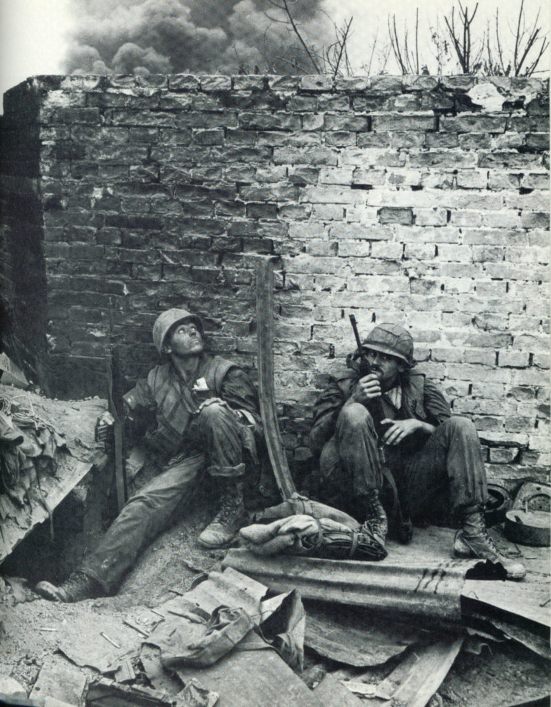 Hue è l’antica capitale dell’Impero della dinastia Nguyen con una cittadella fortificata, ispirata alla Città Proibita di Pechino, che circonda il Palazzo della pace. Si trattava quindi di un obiettivo dall’alto valore simbolico, ma anche strategico visto che il suo ponte ferroviario sul fiume dei profumi era una delle principali arterie di comunicazione con le basi americane nei pressi della zona smilitarizzata. L’intelligence dei Vietcong qui aveva fatto un lavoro sopraffino nell’individuare ogni singola installazione militare in città; inoltre aveva stilato un’ampia lista di personale civile, militare e cittadini stranieri da catturare ed evacuare come prigionieri di guerra se possibile, se no da uccidere sul posto. Anche nel caso di Hue vi furono dei segnali premonitori che avrebbero potuto mettere in allarme le forze locali, ma forse confidando troppo nella natura sacra della città il generale sud vietnamita Ngo Quang Truong escluse un attacco al centro cittadino schierando le sue forze fuori dall’abitato. Nelle prime ore del 31 Gennaio il 12° battaglione Vietcong, un battaglione di genieri, due reggimenti di fanteria della NVA ed un battaglione missilistico investirono Hue. Due erano gli obiettivi militari di primaria importanza e cioè il quartier generale della 1a divisione sud vietnamita sulla riva Nord e il compound che ospitava i consiglieri militari americani e australiani sulla riva Sud. Una gragnuola di missili si abbatté su quest’ultimo, ma i Vietcong invece di attaccare subito dopo la fine del fuoco di sbarramento attesero cinque minuti buoni durante i quali i marines poterono prendere posizione e iniziare una disperata difesa. Nonostante questo grave errore tattico il resto della città cadde rapidamente in mano degli attaccanti e sul pennone della cittadella, il punto più alto dell’intero Vietnam del Sud, fu innalzata la bandiera rosso-blu del Vietcong. Alla base americana di Phu Bai il generale Foster LaHue non si avvide subito della gravissima situazione e, ricevuti i primi rapporti di un attacco contro Hue, inviò in soccorso solo due plotoni e mezzo del marine accompagnati da quattro carri Patton. Questo convoglio venne falcidiato dalle imboscate nemiche, i Vietcong e NVA oltre alla città avevano assunto il controllo delle campagne circostanti, e dovette ben presto chiedere aiuti per evitare di essere annientato. Un’altra compagnia venne così spedita verso Hue e, preso contatto con il convoglio, lo aiutò a raggiungere il compound alleato sulla riva sud; l’azione, sebbene certamente salvò la vita al personale della struttura, costò gravi perdite che aumentarono ulteriormente quando LaHue diede lo scriteriato ordine a quelle poche forze di passare sulla riva Nord. L’azione fu un massacro e cinquanta dei centocinquanta marines che vi presero parte vennero uccisi o feriti. La stabilizzazione del perimetro intorno al compound della riva Sud e del quartier generale sud vietnamita della riva Nord creò comunque le precondizioni per la controffensiva perché così gli elicotteri ebbero due aree sufficientemente sicure dove scaricare i rinforzi. Sin dal 1° Febbraio iniziò un violento e sanguinoso scontro tra le vie della città nel tentativo di riconquistarla metro per metro. Le cose si fecero sin da subito difficili intanto perché, sia a causa della natura storica della città che delle pessime condizioni metereologiche, gli americani dovettero fare a meno del supporto aereo e dell’artiglieria; inoltre i Vietcong e le forze della NVA crearono una serie di posizioni fortificate negli edifici della città così che ogni finestra o angolo poteva nascondere un’insidia… per non parlare poi dei cecchini appostati in ogni dove e pronti a fare strage delle squadre dei marines. Anche sulla riva Nord i sud vietnamiti non se la passavano meglio: ogni tentativo di portare rinforzi via terra si concludeva con pesanti perdite causa le imboscate, il campo d’aviazione di Tay Loc fu riconquistato a caro prezzo e le mura nord-ovest della cittadella, riconquistate il 4 Febbraio, vennero nuovamente perse il 6. Anche il tentativo di tagliere la via di rifornimento che supportava i comunisti a Hue fu un fallimento sanguinoso: due battaglioni della NVA supportati dal pesante fuoco dei mortai respinse con gravi perdite l’attacco di un battaglione della 1a divisione cavalleria aerea americana; questa si rese autrice di un’eroica ritirata notturna di undici ore attraverso le risaie, azione straordinaria che però non poteva nascondere il fatto che il tentativo di tagliare i viveri a Hue era miseramente fallito. Solo il 10 Febbraio la riva sud della città fu completamente ripresa mentre i sud vietnamiti avevano riconquistato i tre quarti della riva Nord, ma i comunisti erano ancora in possesso di ampi settori della cittadella e lanciavano spettacolari contrattacchi a dimostrare come il loro spirito combattivo non fosse per nulla scosso. Gli assalti alla cittadella restano alcuni degli scontri più feroci mai sostenuti dai marines dopo la seconda guerra mondiale, James Arnold ricorda come nella settimana che andò dal 13 al 20 Febbraio quattro compagnie contarono quarantasei morti, duecentoquaranta feriti gravi e sessanta feriti considerati comunque ancora abili a combattere. La situazione era così grave che le perdite venivano supplite con giovani reclute spedite direttamente dagli Stati Uniti dove avevano da poco concluso il corso d’addestramento. Il 21 Febbraio il 1° cavalleria riuscì finalmente a interrompere i rifornimenti alla città, l’assalto finale alla cittadella venne lasciato alla compagnia Pantere Nere della 1a divisione sud vietnamita che spezzò la resistenza nemica e ammainò la bandiera del Vietcong dopo venticinque giorni di scontri. Hue era ridotta in macerie, i sud vietnamiti avevano avuto 384 morti e 1800 feriti, gli americani, tra esercito e marines, 216 morti e 1364 feriti mentre i Vietcong e la NVA ebbero forse 5000 cad